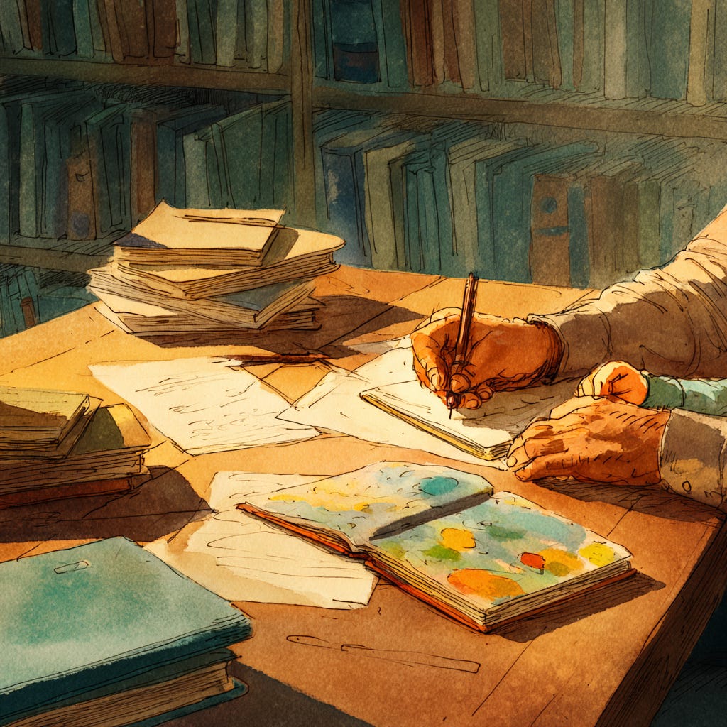 No fim, este espaço é minha aposta de que o processo pode ser tão fascinante quanto o resultado. E se essa jornada de rascunhos públicos puder inspirar ou simplesmente fazer companhia a outras pessoas que amam essa arte, a partilha terá encontrado seu propósito.